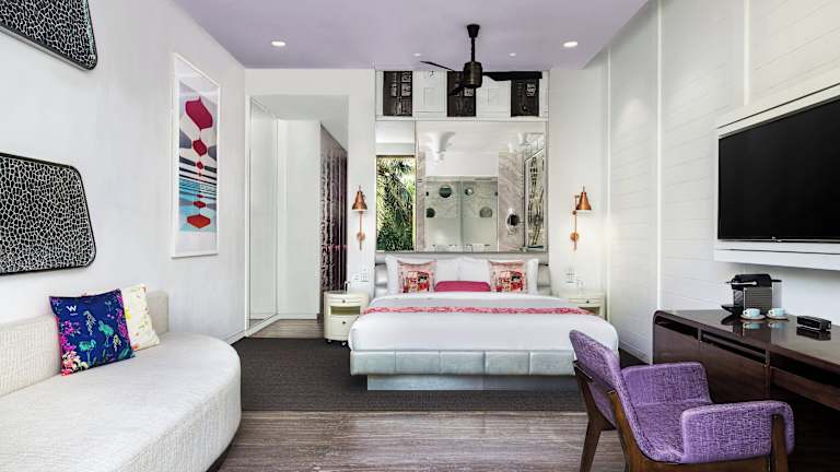 Die Zimmer im W Goa umfassen Annehmlichkeiten wie Klimaanlage, einen Balkon oder eine Terrasse mit Meerblick, ein Doppelbett und ein Sofabett. Auch ein Safe, eine Minibar, ein Schreibtisch, ein Fernseher, kostenfreies Wifi, sowie ein eigenes Bad mit Pflegeprodukten und Haartrockner sind vorhanden. Einige Unterkünfte verfügen zusätzlich über eine Sonnenterrasse oder ein Tauchbecken. Es sind rollstuhlgerechte Zimmer verfügbar.