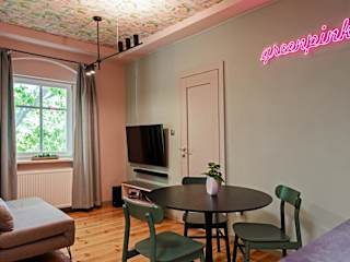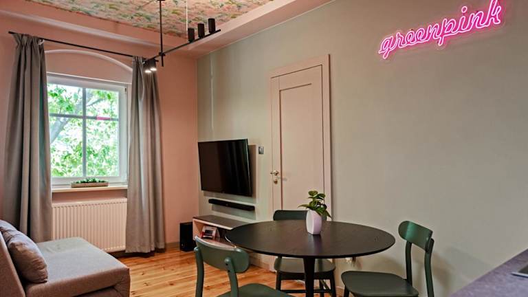 W12 Home Station - Apartement Greenpink bietet einen Stadtblick sowie einen Garten. Die Ferienwohnung verfügt über einen kostenlosen Privatparkplatz und eine rund um die Uhr besetzte Rezeption. Zu den Annehmlichkeiten zählen auch Internetzugang sowie Nichtraucherzonen sowohl in öffentlichen als auch in privaten Bereichen.