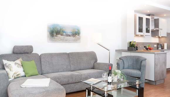 Die Ferienwohnung verfügt über einen Balkon, 2 Schlafzimmer, ein Wohnzimmer sowie eine gut ausgestattete Küchenzeile mit einem Kühlschrank und einem Geschirrspüler. Zur Ausstattung gehören zudem ein Flachbild-TV, ein DVD-Player sowie ein CD-Player.