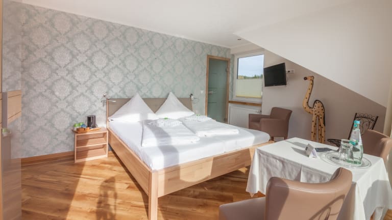 Suchen Sie einen passenden Ort für einen Wohlfühlurlaub? Dann ist diese Unterkunft in Daun mit ihren 3 Sternen eine erstklassige Übernachtungsmöglichkeit. Die Urlauber haben diesem Haus das Prädikat HolidayCheck Quality Selection 2014 verliehen. Unser familiär geführtes Haus liegt in unmittelbarer Wald nähe mit herrlichem Blick auf das Eifeldorf Mehren in absolut ruhiger Umgebung und ist der ideale Ausgangspunkt für die verschiedensten Aktivitäten, Wandern, Radfahren oder einfach mal ausspannen. Es handelt sich um Ihren Urlaub, die wohl wertvollsten Tage im Jahr. Die absolute Ruhe, dank der Lage unseres Hotels, garantiert bereits am ersten Abend Entspannung und einen erholsamen Schlaf. Der Tag beginnt mit einem gesunden reichhaltigen Frühstücksbuffet. Darauf zu finden sind unsere hauseigenen Produkte wie unser Landschinken, verschiedenen Aufschnitte, Käse sowie einer Auswahl an verschiedenen Brot und Brötchensorten, Joghurt, Müsli, Obst der Saison und noch vieles mehr, was man zu einem gelungenen Start in den Tag braucht. Unbezahlbar und im Preis eingeschlossen ist das Stück Natur an einem der schönsten Plätze in der Vulkaneifel. Erholung und Wohlbefinden erwarten Sie in unserer Bio-Gartensauna die für Sie inklusive ist. Sie haben es sich verdient! Wir würden uns freuen, wenn wir Ihr Gastgeber sein dürfen.