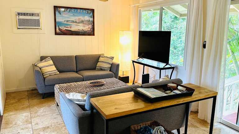 Die Unterkunft Waimea Bay Garden Bunglaow befindet sich in unmittelbarer Nähe von mehreren Stränden. Etwa 300 m vom Strand Three Tables und 200 m vom Waimea Bay Beach entfernt, bietet sie eine ausgezeichnete Lage für einen erholsamen Aufenthalt. Der Strand Pupukea Beach Park ist 600 m entfernt, während der Kawailoa Beach in einer Distanz von 2,7 km liegt. Der nächstgelegene Flughafen, der Internationale Flughafen Honolulu, ist rund 49 km entfernt.