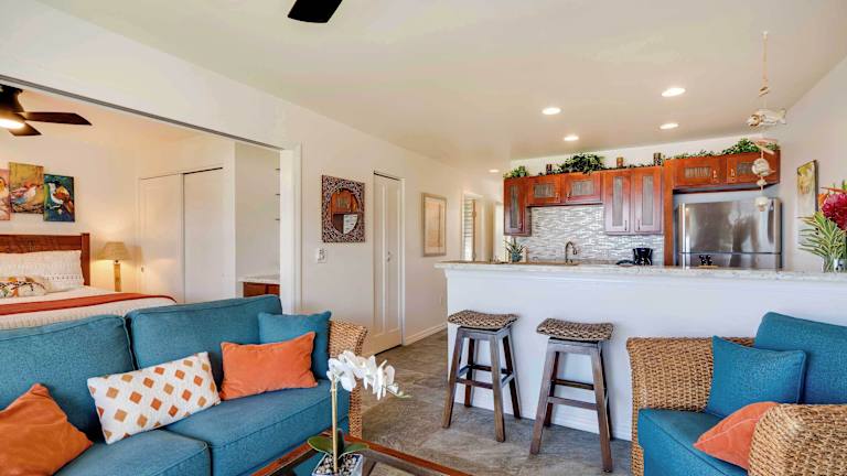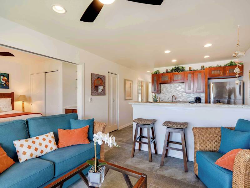 Die Unterkunft liegt 50 m vom Strand Waipouli entfernt und ist von einem Garten umgeben. Der Strand Papaloa Beach befindet sich 300 m entfernt, während der Fuji Beach 1,1 km entfernt ist. Der Flughafen Lihue ist 13 km von der Unterkunft entfernt.