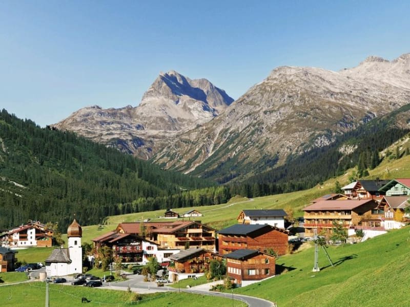 Das Alpen Sport Resort Rote Wand liegt ruhig gelegen in Zug bei Lech am Arlberg, am Fuße der berühmten Madloch Skiabfahrt inmitten des Arlberger Ski Gebiet in den Alpen von Österreich.