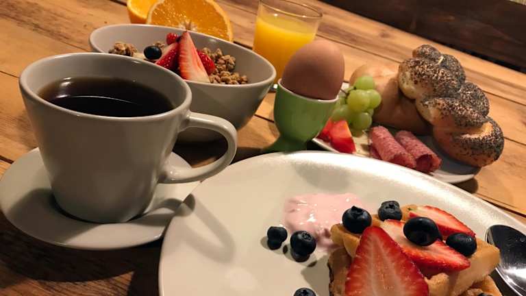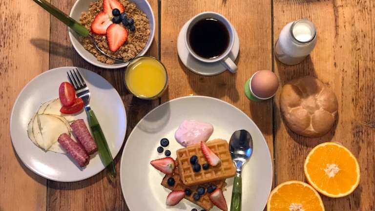 Ein vielfältiges Frühstück wird jeden Morgen angeboten und umfasst kontinentale, vegetarische und vegane Optionen. Snacks und Getränke sind über einen Getränke- und Snackautomaten erhältlich.