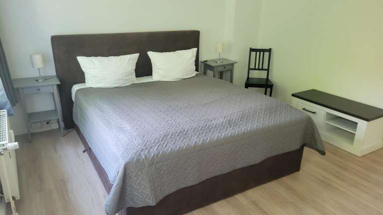 Die Ferienwohnung verfügt über 2 Schlafzimmer sowie eine Küche, die mit einem Kühlschrank ausgestattet ist. Ein Flachbild-TV und ein gemütlicher Sitzbereich gehören ebenfalls zur Ausstattung. Das Badezimmer bietet eine Dusche. Handtücher und Bettwäsche werden zur Verfügung gestellt.
