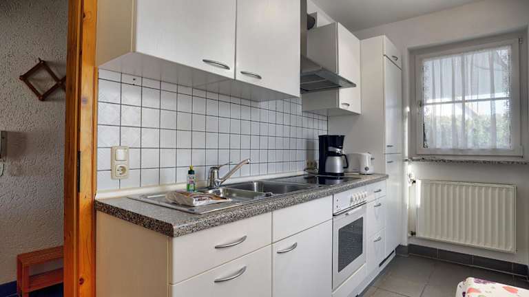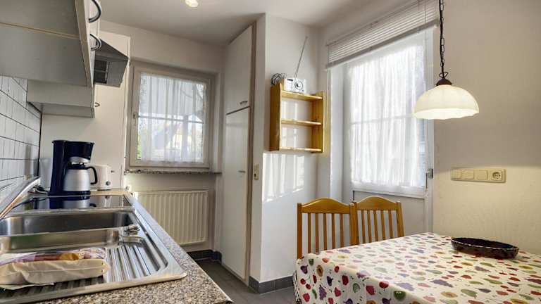 Die Ferienwohnung verfügt über eine Küche, die mit einem Kühlschrank, einem Ofen sowie einer Kaffeemaschine ausgestattet ist. Weitere Informationen über Verpflegungsmöglichkeiten sind nicht vorhanden.