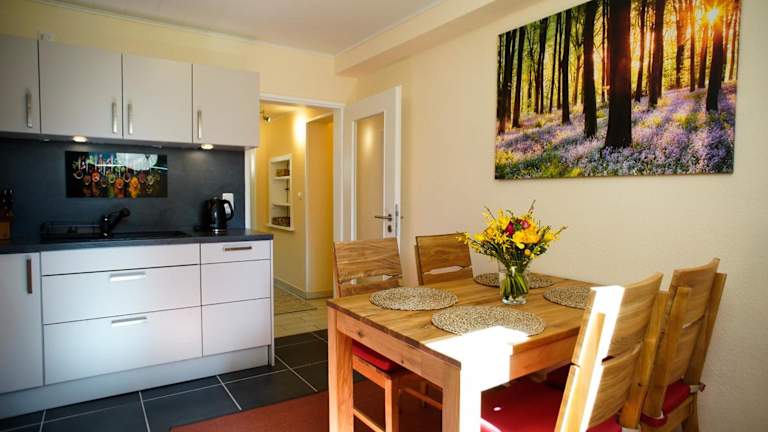 Die Ferienwohnung besteht aus einem Schlafzimmer und einem Wohnzimmer. Sie verfügt über eine komplett ausgestattete Küche mit Kühlschrank und Kaffeemaschine sowie ein Badezimmer mit Dusche und Haartrockner. Die Unterkunft bietet einen Flachbild-TV mit Satellitenkanälen und einen CD-Player.