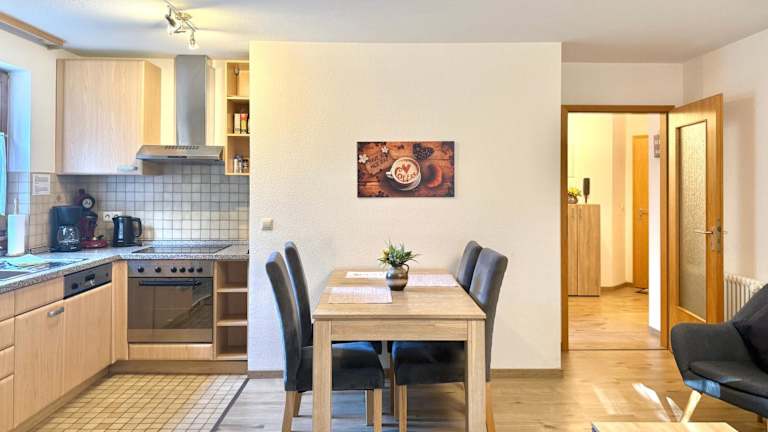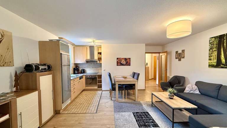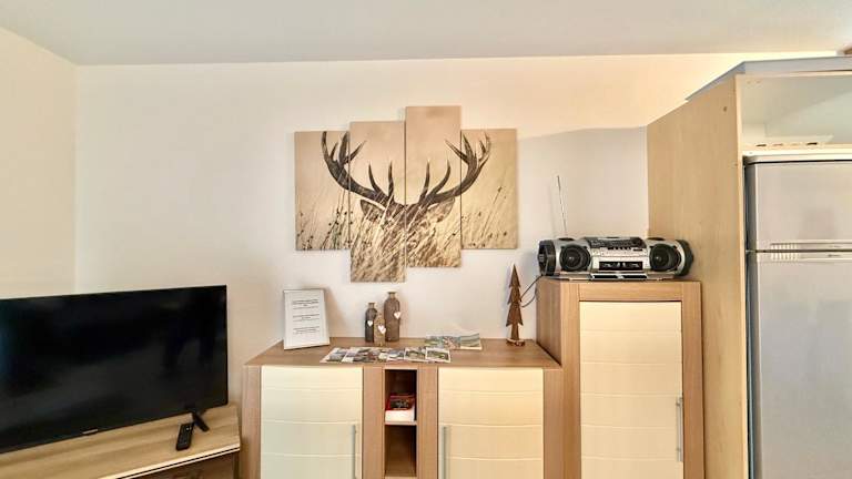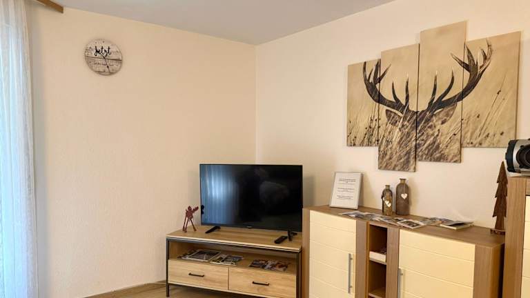 Die Ferienwohnung umfasst ein Schlafzimmer, ein Wohnzimmer mit Flachbild-TV und eine gut ausgestattete Küche mit Kühlschrank und Geschirrspüler. Das Badezimmer ist mit einer Dusche ausgestattet. Handtücher und Bettwäsche werden bereitgestellt. Die Unterkunft ist zudem ideal für Gäste, die einen ruhigen und erholsamen Aufenthalt suchen.