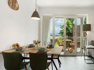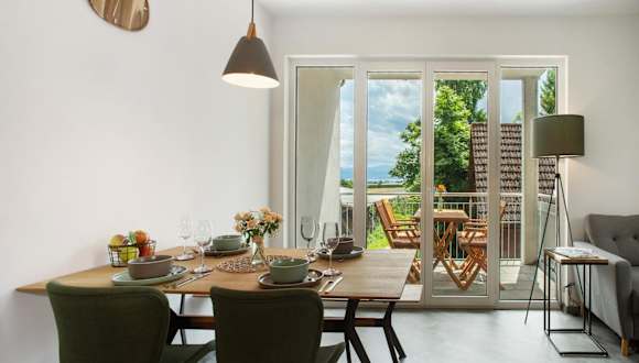 Die Ferienwohnung verfügt über 2 Schlafzimmer, ein Wohnzimmer, ein Badezimmer mit Dusche sowie eine gut ausgestattete Küche mit Kühlschrank und Geschirrspüler. Ein Balkon mit Bergblick lädt zum Verweilen ein. Handtücher und Bettwäsche werden bereitgestellt.