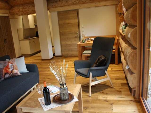 Die Ferienwohnung ist versehen mit einem Flachbild-TV. Die Küchenzeile ist ausgestattet mit einem Kühlschrank, einem Geschirrspüler, einem Ofen sowie einer Kaffeemaschine und einem Wasserkocher.