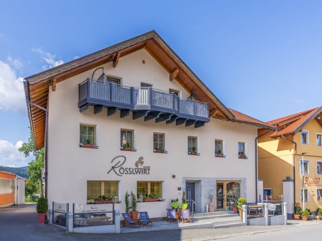 Wir wollen den Gästen unsere schöne Heimat mit all ihren Reizen näher bringen. Bei uns im Lamer Winkel kann man jeder Sportart nachgehen, sei es z. B. Wandern, Mountainbiken, Gleitschirmfl iegen, Walken, Skifahren oder Langlauf. Das Besondere bei uns in der Region ist aber die Tatsache, dass Sie mit allen Aktivitäten direkt vor unserer Haustüre beginnen können. Nach einem erlebnisreichen Tag stärken Sie sich dann am Abend mit vom Juniorchef selbst kreierten Menüs aus unserer Landgenuss- Küche. Wir verwenden wo immer möglich nur erstklassige Produkte aus der Heimat, da für uns der Begriff Heimatliebe an erster Stelle steht. Für uns ist es wichtig, dass unsere Gäste sich im Hotel Rösslwirt so wohlfühlen „wie Zuhause“, ...denn Heimat kein Ort - sondern ein Gefühl!