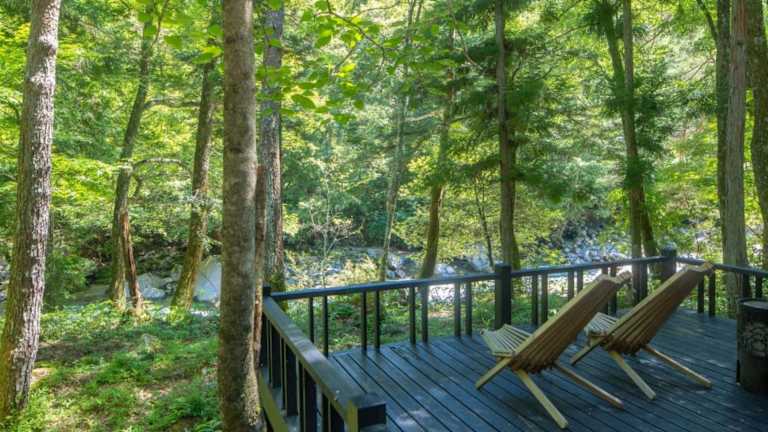 Die Zimmer sind im japanischen Stil mit Tatami-Boden, Futon-Bett und einem gemütlichen Ambiente ausgestattet. Jedes Zimmer verfügt über einen Flachbild-TV, einen Kühlschrank und ein eigenes Badezimmer mit Badewanne, kostenfreien Pflegeprodukten und einem Haartrockner. Alle Zimmer sind Nichtraucherzimmer und bieten einen Blick auf den nahegelegenen Fluss. Kostenloses Wifi ist in allen Zimmern sowie im Lobbybereich verfügbar.
