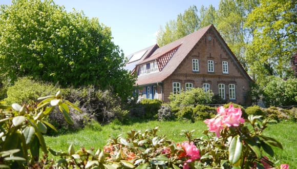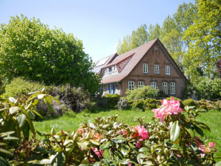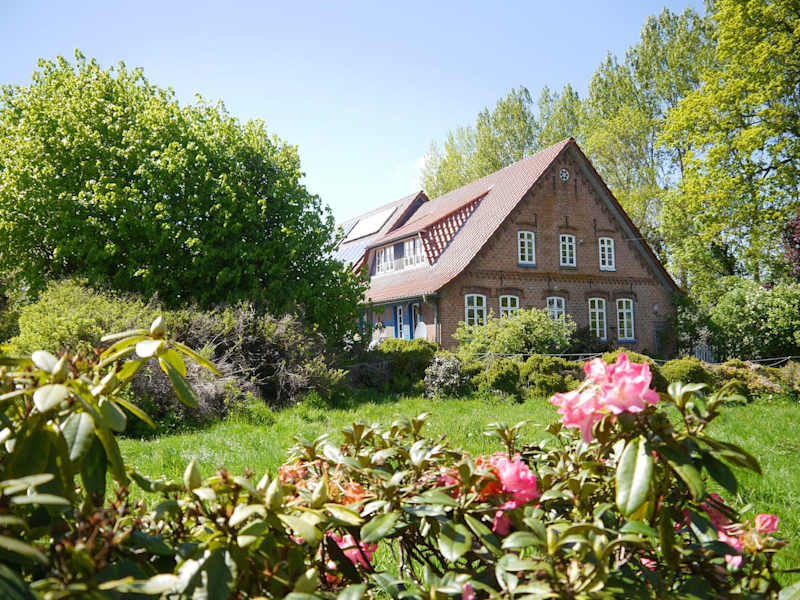 Unsere 75m² große Ferienwohnung liegt in einer traumhaften Alleinlage. Nach einer rund 600 Meter langen Einfahrt, versteckt hinter Bäumen und Rhododendren, befindet sich der kleine Warderhof. Mitten in der Natur, umgeben von Feldern, direkt an einem Naturteich, umgeben von einer park-ähnlichen Naturlandschaft mit vielen Bäumen.