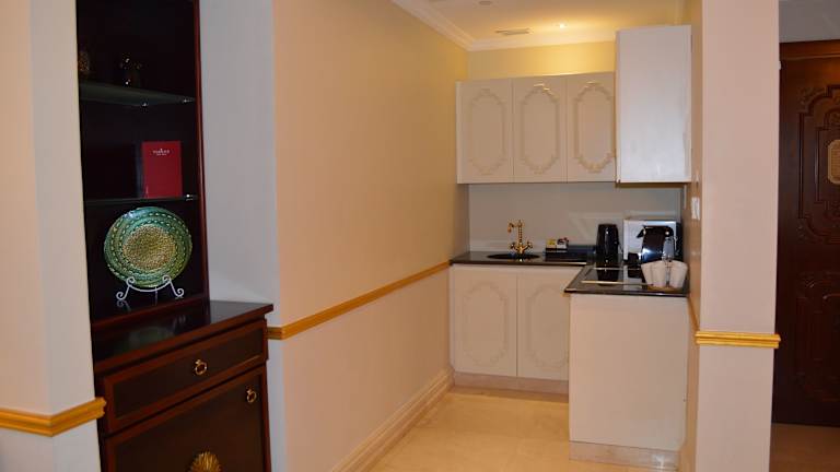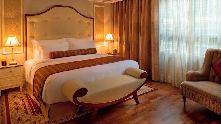 Die klimatisierten Zimmer kombinieren modernes Design mit klassischen arabischen Einflüssen. Standardmässig sind eine Küche, ein Badezimmer, ein Queensize- oder Kingsize-Bett, ein Safe, eine Minibar sowie ein Schreibtisch vorhanden. Zusätzliche Annehmlichkeiten umfassen die Ausstattung mit einem TV-Gerät, einer Tee- und Kaffeezubereitungsmöglichkeit sowie einem Bügelset. Die Badezimmer verfügen über eine Dusche und Badewanne, Haartrockner und Kosmetikartikel. Für besonderen Komfort gibt es rollstuhlgerechte Zimmer.