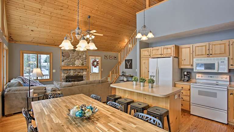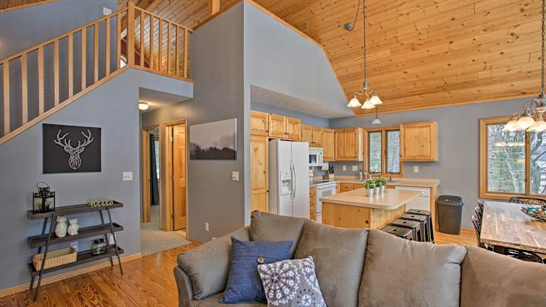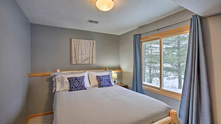 Das Cozy Waterfront Fife Lake Cottage ist ein heimeliges Ferienhaus mit Seeblick und einem Dock. Es verfügt über eine Veranda/Patiobereich sowie eine gemütliche Bar. Ein Spa- und Wellnesscenter steht zur Verfügung, um eine entspannende Atmosphäre zu schaffen. Zu den Annehmlichkeiten zählen eine Nichtraucherunterkunft, eine kontaktlose Check-in/Check-out-Möglichkeit sowie verschiedene Brettspiele und Puzzles für die Gäste.