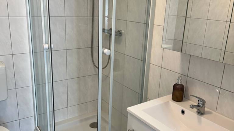Die Zimmer in der Unterkunft Waterkant haben ein voll ausgestattetes eigenes Badezimmer mit einer Dusche und einem Haartrockner.