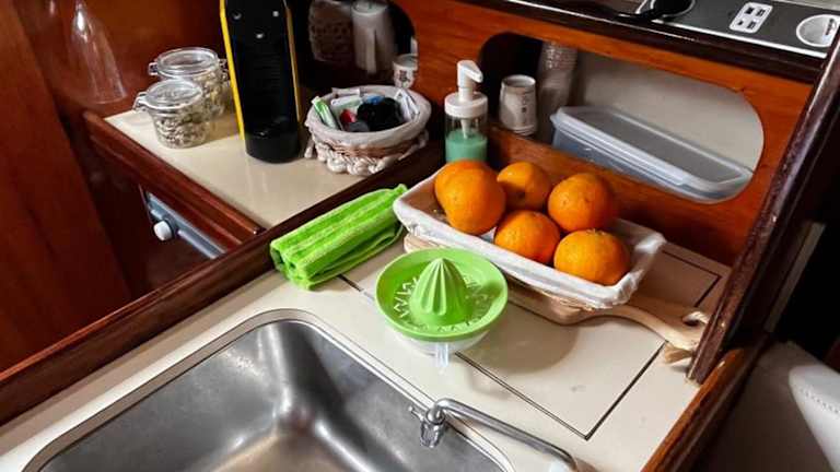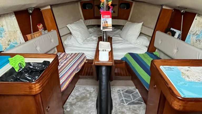 Das Boot verfügt über ein separates Schlafzimmer, eine voll ausgestattete Küche mit Kühlschrank und Minibar sowie ein Badezimmer. Handtücher und Bettwäsche werden bereitgestellt, um den Gästen zusätzlichen Komfort zu bieten.