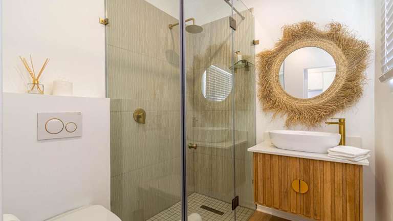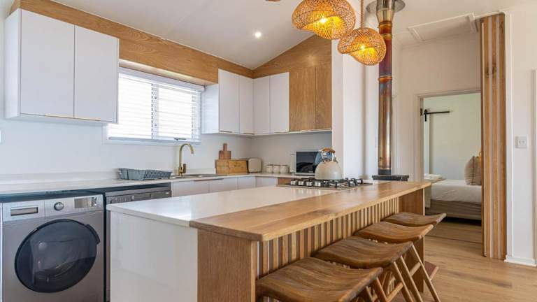 Die Unterkunft Waterside Apartment besticht durch einen Balkon mit Bergblick und einen eigenen Strandbereich sowie Grillmöglichkeiten.