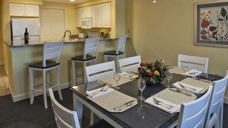Die Condos im Waterside Resort bieten einen eigenen Balkon sowie eine voll ausgestattete Küche. Jedes Zimmer umfasst ein Wohnzimmer und einen Essbereich, die für eine angenehme Aufenthaltsqualität sorgen.