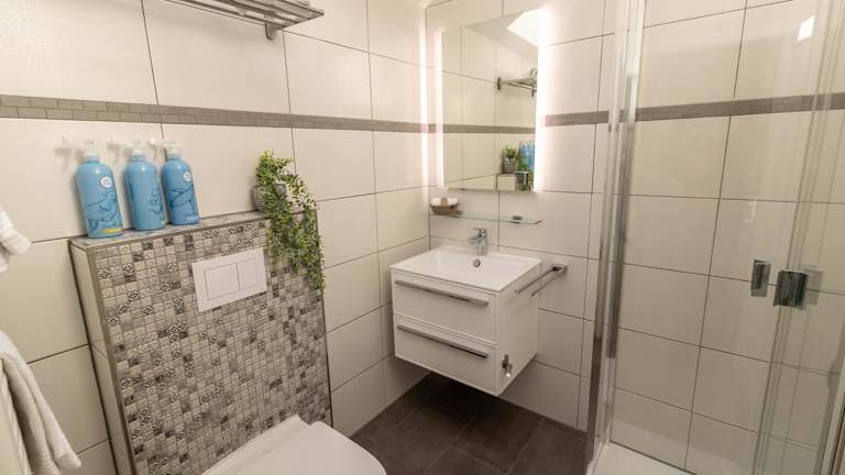 Das Ferienhaus ist mit zwei Schlafzimmern sowie einer Küche ausgestattet, die über einen Kühlschrank und einen Geschirrspüler verfügt. Zudem bietet es zwei Badezimmer mit Dusche, Haartrockner und Waschmaschine. Handtücher und Bettwäsche werden bereitgestellt. Allergikerfreundliche Zimmer sind verfügbar.