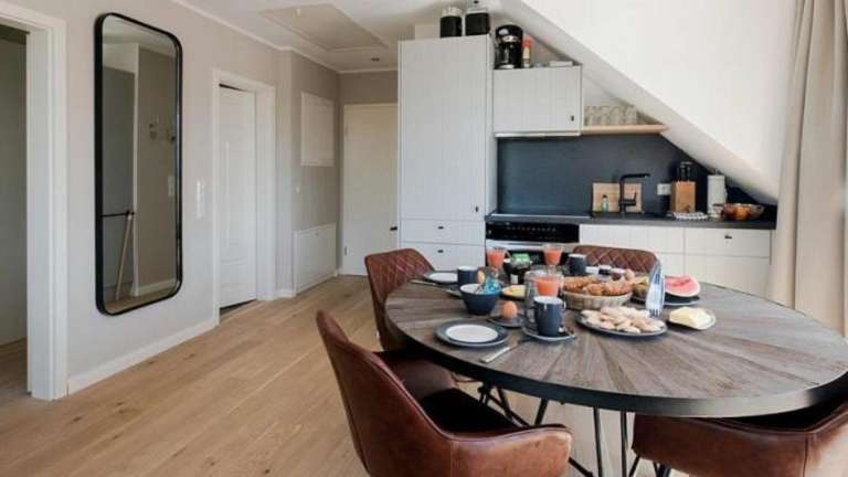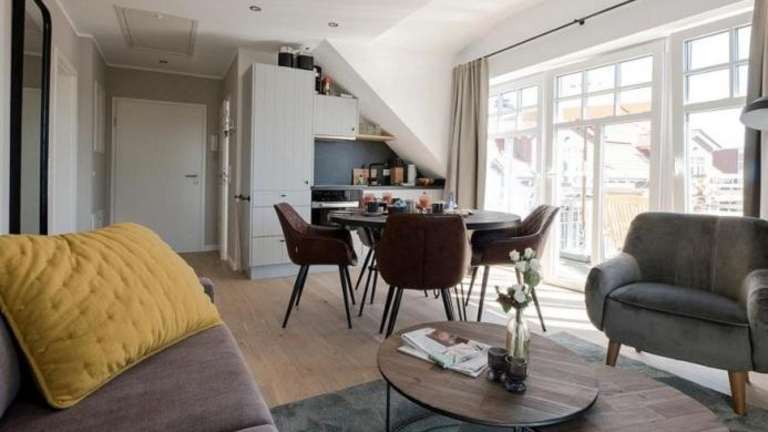 Die Ferienwohnung umfasst 2 Schlafzimmer und ist ausgestattet mit einem TV sowie einer voll ausgestatteten Küche, die einen Kühlschrank, Geschirrspüler, Waschmaschine, Ofen und Herdplatte beinhaltet.