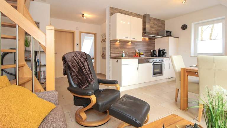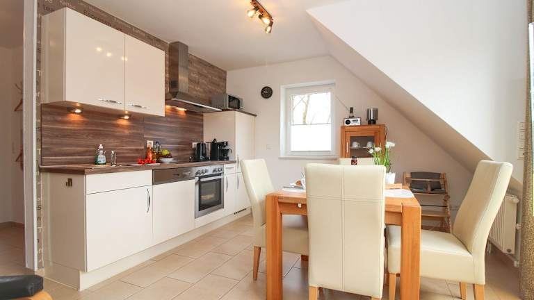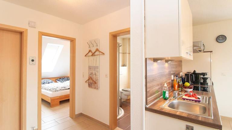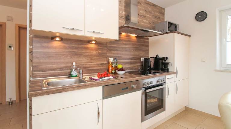 Die Ferienwohnung besitzt ein Schlafzimmer und ist mit einem TV sowie einer gut ausgestatteten Küchenzeile ausgestattet, die über einen Kühlschrank und einen Geschirrspüler verfügt. Zudem gibt es ein Badezimmer mit einer Dusche. Gartenmöbel sind ebenfalls vorhanden.