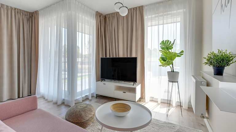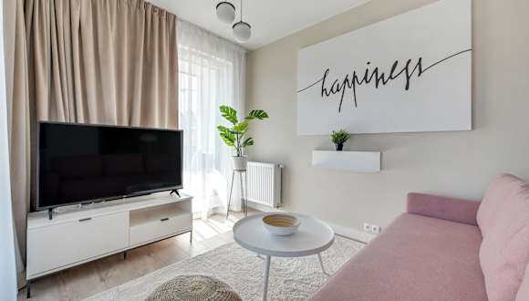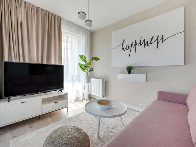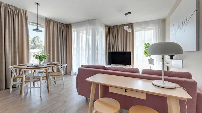 Wave Apartments - Olivia Park bietet eine moderne Ferienwohnung, die über einen Garten und eine Terrasse mit Gartenblick verfügt. Die Einrichtung umfasst zudem eine Waschmaschine für die Bequemlichkeit der Gäste. Kostenloses WLAN ist in der gesamten Unterkunft verfügbar und es gibt Privatparkmöglichkeiten vor Ort.