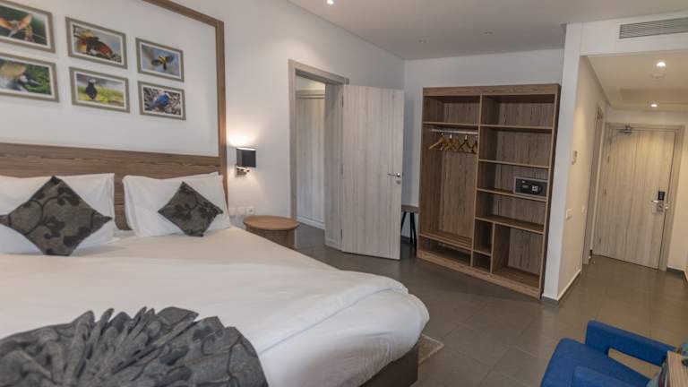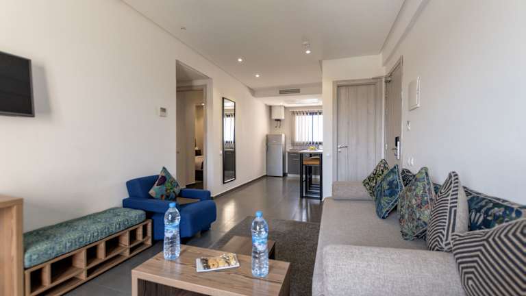 Die Zimmer sind mit Klimaanlage, Heizung und Ventilator ausgestattet. In den meisten Zimmern gehört ein Balkon zum Standard. Zudem verfügen die Zimmer über ein Doppelbett, ein Sofabett sowie eine Kochnische mit Kühlschrank, Mikrowelle und Tee-/Kaffeekocher. Ein Safe sorgt für den besten Schutz des Eigentums der Gäste. WLAN steht kostenfrei zur Verfügung und die Badezimmer sind mit einer Dusche und einem Haartrockner ausgestattet.