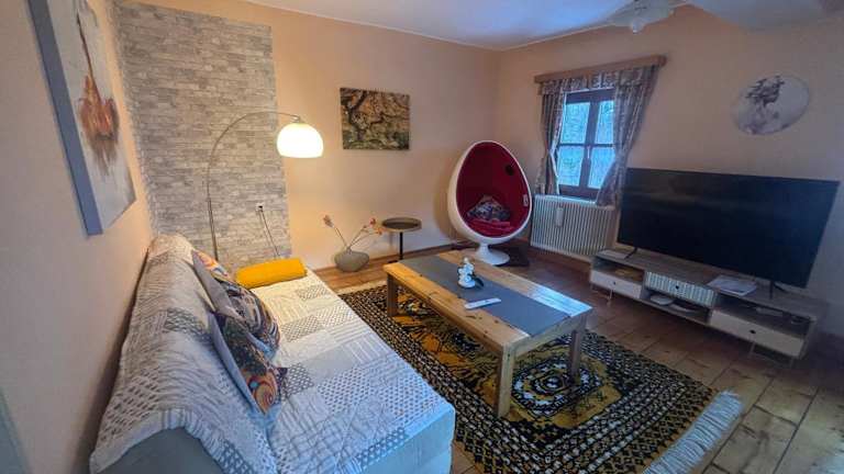 Die Ferienwohnung verfügt über ein Schlafzimmer, ein Wohnzimmer mit Flachbild-TV, eine gut ausgestattete Küche mit Kühlschrank und Geschirrspüler sowie ein Badezimmer mit Badewanne oder Dusche. Handtücher und Bettwäsche stehen zur Verfügung.