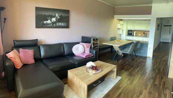 Die Ferienwohnung umfasst ein Schlafzimmer, ein Wohnzimmer, einen eigenen Balkon mit Bergblick, eine gut ausgestattete Küche sowie ein Badezimmer mit Dusche und Badewanne. Für die Bequemlichkeit der Gäste werden Handtücher und Bettwäsche bereitgestellt. Zudem steht ein Innenpool zur Verfügung.