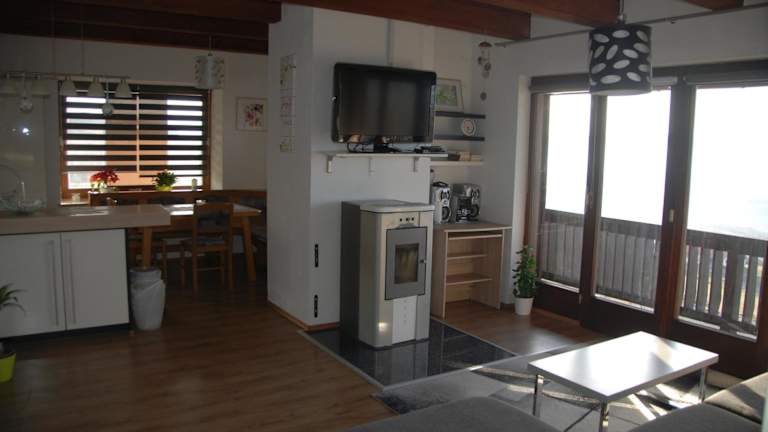 Das Naturpark-.Weinbergferienhaus befindet sich in Kitzeck im Sausal und bietet eine ruhige Lage mit schöner Aussicht auf die Stadt und die Berge.