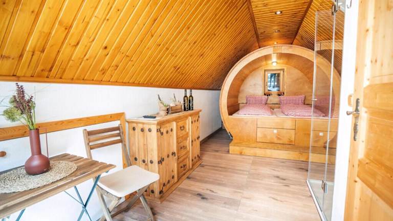 Die Weinfass-Suite für 4 Personen bietet eine Terrasse und ist eine gemütliche Unterkunft in Grub an der March. Die Einrichtung beinhaltet eine Küchenzeile und steht den Gästen zur Verfügung. Kostenloses WLAN ist in der gesamten Unterkunft verfügbar, ebenso ein Privatparkplatz vor Ort.