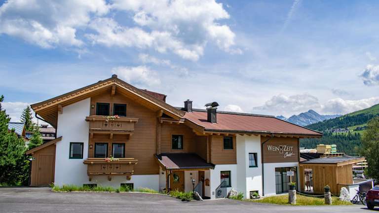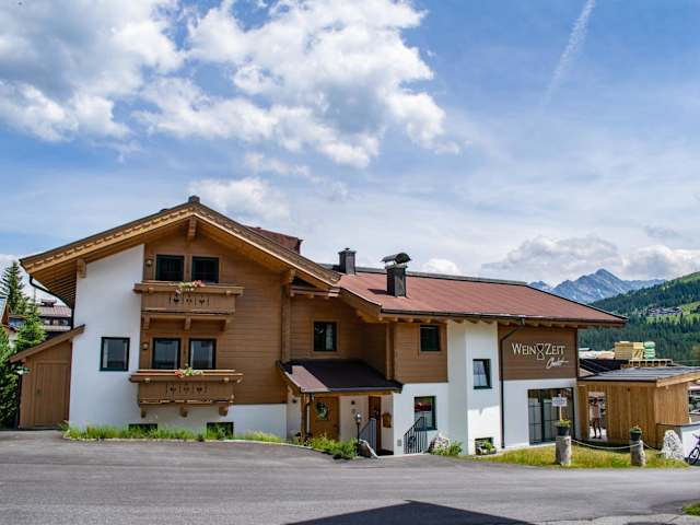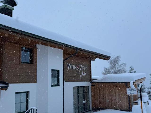 Das Weinzeit Chalet bietet Übernachtungsmöglichkeiten mit Bergblick. Die Unterkunft verfügt über eine Terrasse, ein Restaurant und eine Bar. WLAN und eine Parkiermöglichkeit stehen ohne Aufpreis zur Verfügung.