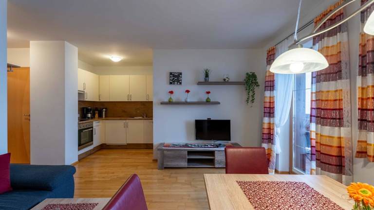 Die Weitblick Appartements bieten Ihnen geräumige und komfortable Unterkünfte mit einem herrlichen Bergblick. Das Apartment verfügt über einen Balkon, auf dem Sie die frische Bergluft genießen können. Im Inneren finden Sie einen gemütlichen Sitzbereich und einen Flachbild-Sat-TV. Die voll ausgestattete Küche bietet Ihnen alle Annehmlichkeiten, die Sie für einen angenehmen Aufenthalt benötigen, einschließlich Kühlschrank, Geschirrspüler, Backofen, Kochfeld, Toaster, Kaffeemaschine und Wasserkocher. Das private Badezimmer ist mit einer Dusche und einem Haartrockner ausgestattet.