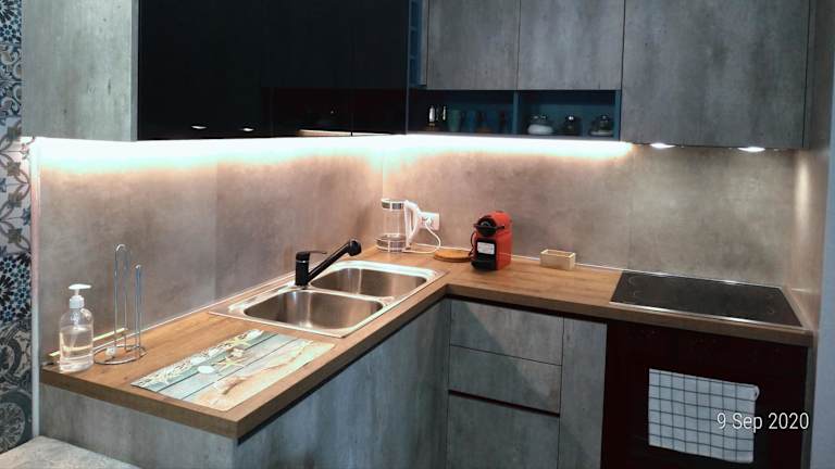 Die Ferienwohnung bietet eine Klimaanlage, ein Schlafzimmer, ein Wohnzimmer sowie eine voll ausgestattete Küchenzeile mit Kühlschrank und Kaffeemaschine. Das Badezimmer ist mit einem Bidet und einer Dusche ausgestattet. Handtücher und Bettwäsche werden zur Verfügung gestellt. Die Zimmer sind allergikerfreundlich und schallisoliert.