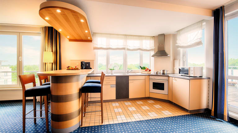 102 Suiten in einer Größe von 50 und 80 qm². Jede Suite ist mit einer eigenen Küchenzeile und Balkon oder Wintergarten ausgestattet und verfügt über einen getrennten Wohn- und Schlafbereich. Davon 2 behindertengerechte Suiten und 2 allergikerfreundliche Suiten. Unsere Standard Kategorie mit Blick zur Auelandschaft oder zum Biotob, unsere Superior Zimmer mit einseitigem Rheinblick oder unsere Executive Zimmer mit zweiseitgem Rheinblick stehen Ihnen zur Verfügung.