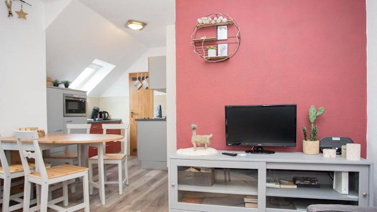 Das Appartement verfügt über ein Schlafzimmer, einen Flachbild-TV, einen Essbereich, eine Küche mit Mikrowelle sowie ein Wohnzimmer. Handtücher und Bettwäsche können gegen Aufpreis bereitgestellt werden.