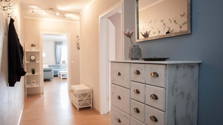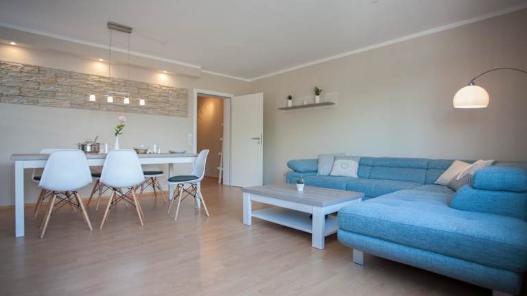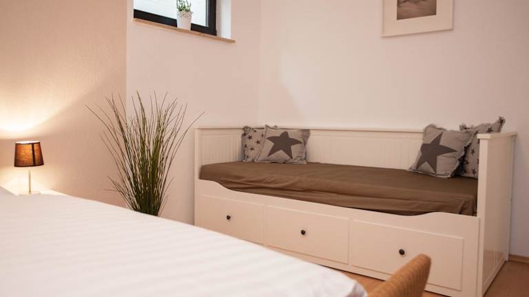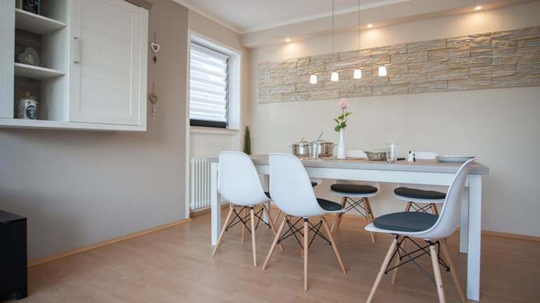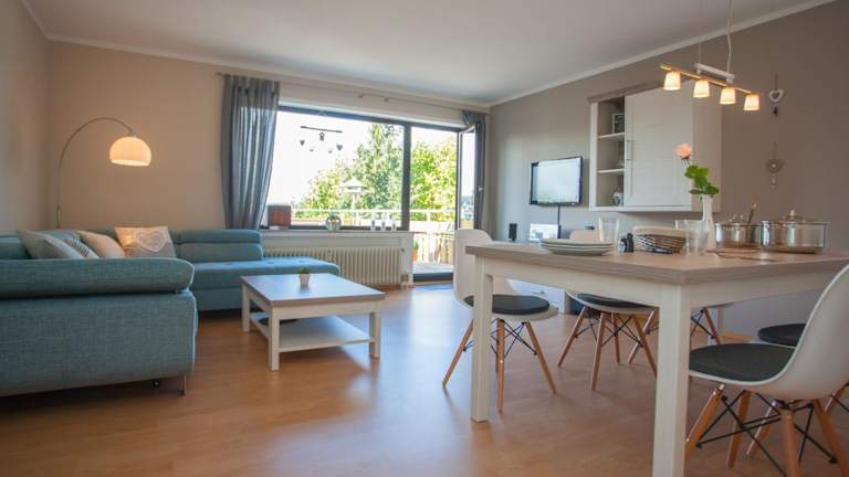 Die Ferienwohnung im Erdgeschoss verfügt über 2 Schlafzimmer, eine gut ausgestattete Küche mit Kühlschrank und Geschirrspüler, ein Wohnzimmer und einen TV. Handtücher und Bettwäsche können gegen Aufpreis bereitgestellt werden.