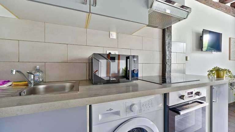 Die Ferienwohnung verfügt über ein Schlafzimmer, eine gut ausgestattete Küche mit Kühlschrank und Ofen, einen Flachbild-TV, einen gemütlichen Sitzbereich sowie ein Badezimmer mit Dusche. Handtücher und Bettwäsche werden bereitgestellt.