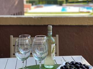 Die Ferienwohnung verfügt über 2 Schlafzimmer, ein Wohnzimmer mit einem Flachbild-TV, eine gut ausgestattete Küche mit Kühlschrank und Ofen sowie 1 Badezimmer mit Dusche. Zudem ist eine Terrasse mit Poolblick vorhanden.