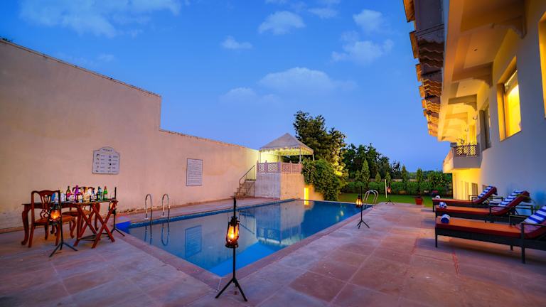 WelcomHeritage Mount Valley Resort Ranthambore ist eine ansprechende Unterkunft mit einem Aussenpool, einem Garten, einem Restaurant und einer Bar. Es werden mehrere Annehmlichkeiten geboten, darunter ein kostenloser Privatparkplatz und eine Abendunterhaltung.