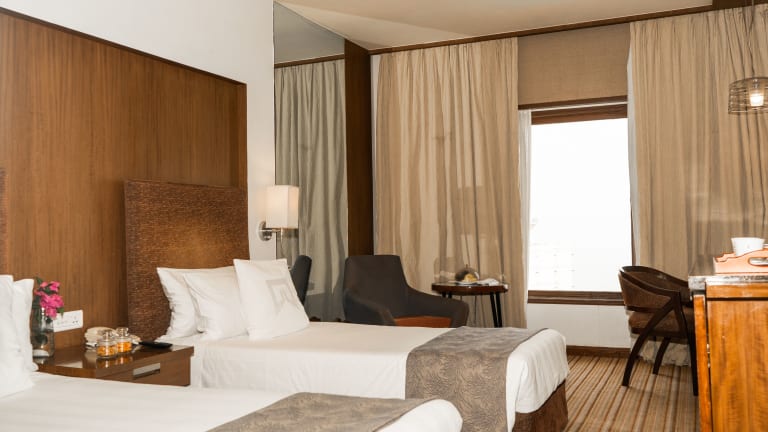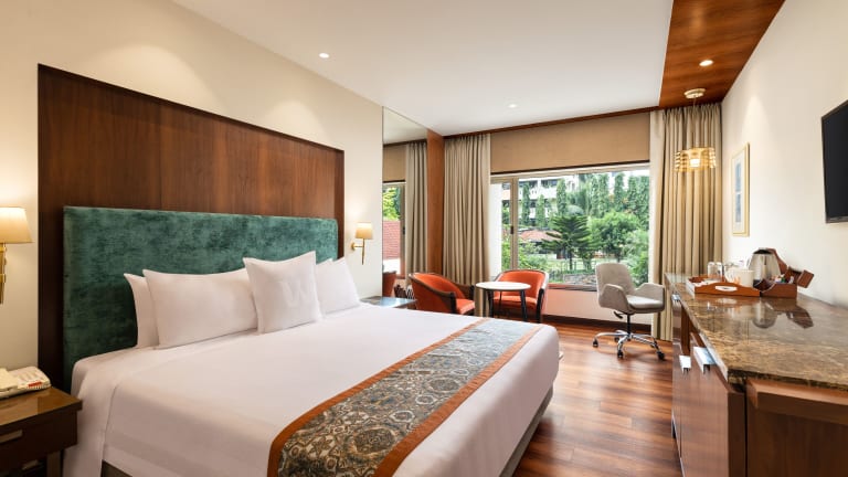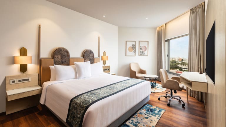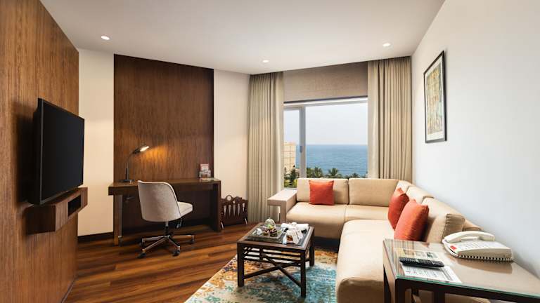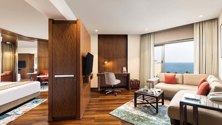 Die Zimmer sind mit luxuriösen Annehmlichkeiten ausgestattet und bieten einen atemberaubenden Blick auf die Bucht von Bengalen oder den Pool. Die Räume sind schallisoliert und verfügen über moderne Annehmlichkeiten wie Klimaanlage, Internetzugang und Badezimmer mit speziellen Hilfestellungen für Gäste mit besonderen Bedürfnissen. Es gibt auch behindertengerechte Einrichtungen.