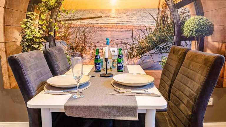 Die Ferienwohnung Wellenrauschen besticht durch ihre Ausstattung mit einem Whirlpool, einer Terrasse und einem Garten. Die Rezeption ist rund um die Uhr geöffnet und die Mitarbeitenden sprechen auch Englisch und Deutsch.