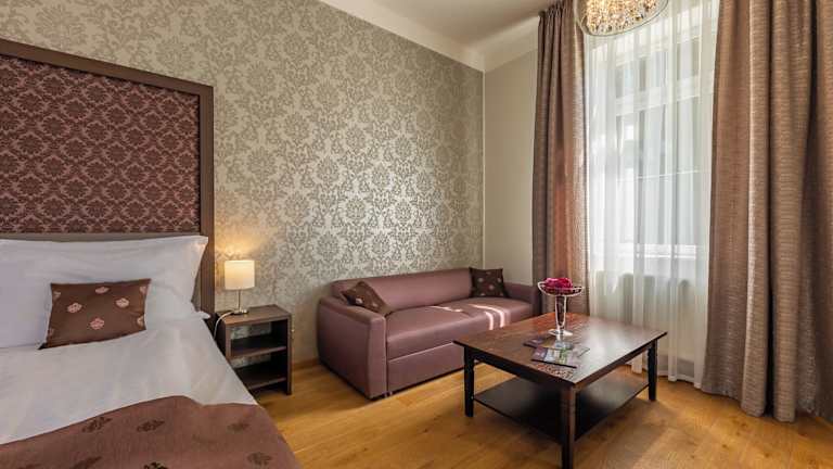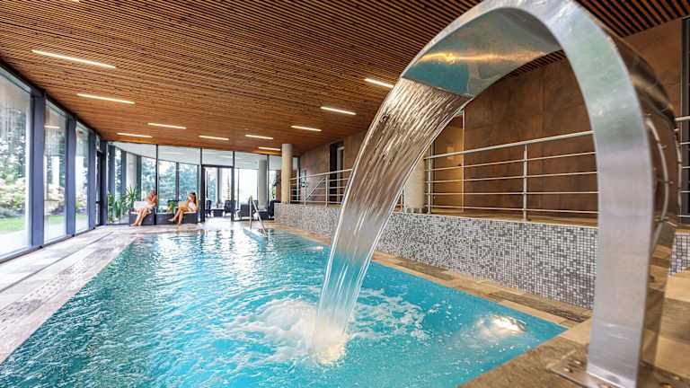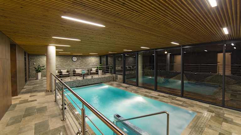 Das Hotel befindet sich in einem frisch renovierten Gebäude, das historische Architektur mit modernen Wellnesseinrichtungen vereint. Gästen stehen zahlreiche Annehmlichkeiten zur Verfügung, wie ein Innenpool, ein Wellnessbereich und verschiedene Entspannungsmöglichkeiten.