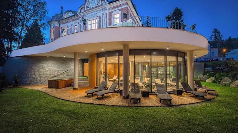 Das Wellness & Spa Hotel Villa Regenhart liegt in unmittelbarer Nähe des Zentrums des Kurortes Jesenik, etwa 500 m entfernt. Die Umgebung bietet eine reizvolle Kulisse mit zahlreichen Möglichkeiten zur Freizeitgestaltung, darunter einen Golfplatz in maximal 3 km Entfernung, sowie Wander- und Radwege.