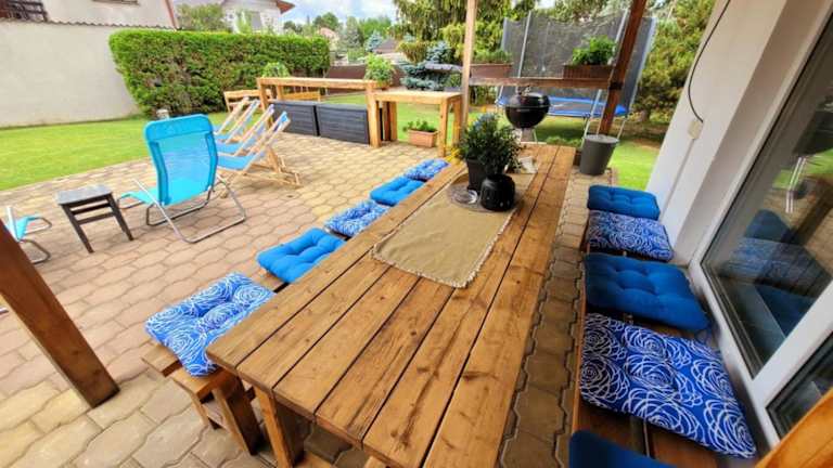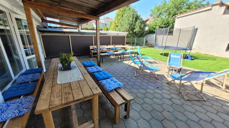 Wellness Aqua House bietet eine Villa mit Gartenblick und mehreren Annehmlichkeiten. Die Unterkunft umfasst einen eigenen Pool, einen Garten sowie eine Terrasse und einen Balkon. Die Villa ist klimatisiert und verfügt über 3 Schlafzimmer, ein Wohnzimmer sowie eine voll ausgestattete Küche. Zudem bietet die Unterkunft einen kostenlosen Privatparkplatz und wird von einem privaten Gastgeber geführt.