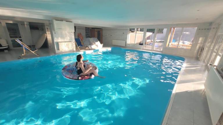 In der Unterkunft Wellness Aqua House können Gäste eine Sauna und einen Whirlpool nutzen. Der private Pool lädt zum Entspannen und Verweilen ein.