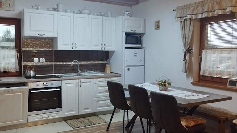 Die Zimmer in der Wellness Chata Horbek sind mit einem Sitzbereich, einem Satelliten Flachbild-TV und einer voll ausgestatteten Küche ausgestattet. Die Küche verfügt über einen Kühlschrank, einen Ofen, eine Mikrowelle, eine Herdplatte, eine Kaffeemaschine und einen Wasserkocher. Ein Gemeinschaftsbad mit Dusche ist ebenfalls vorhanden.