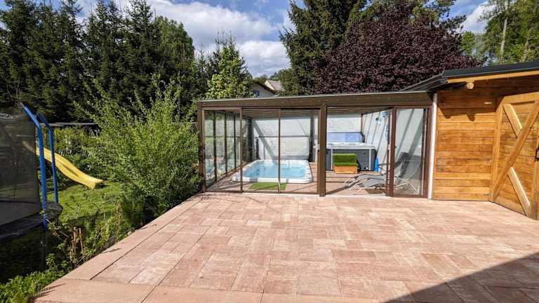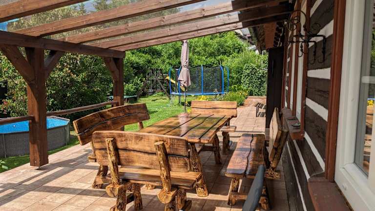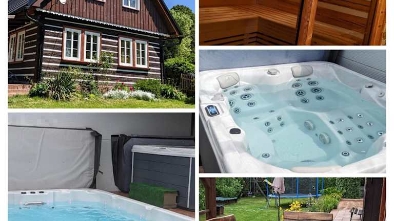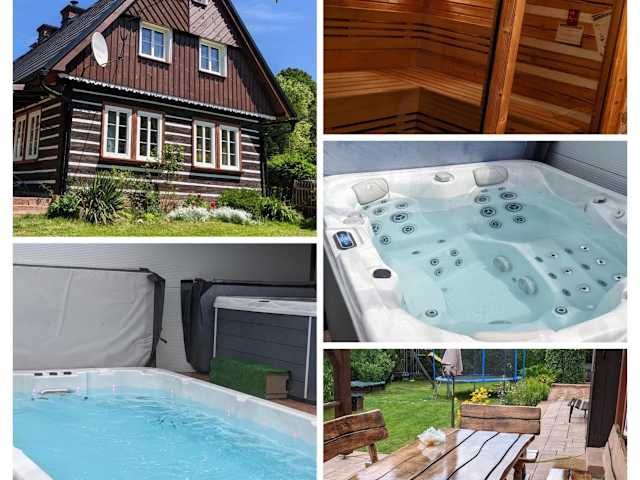 Wellness chata - Krkonoše bietet Übernachtungsmöglichkeiten in einem heimelig ausgestatteten Chalet mit äusserem Pool, kostenlosem Wifi, einem Kinderclub und einer Gemeinschaftsküche. Das Chalet verfügt über eine Terrasse und kostenlose Parkiermöglichkeiten. Es handelt sich um eine familienfreundliche Unterkunft, die verschiedene Annehmlichkeiten wie eine Sauna und einen Kinderspielplatz bietet.
