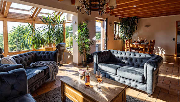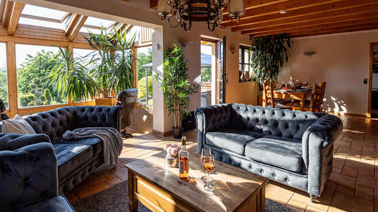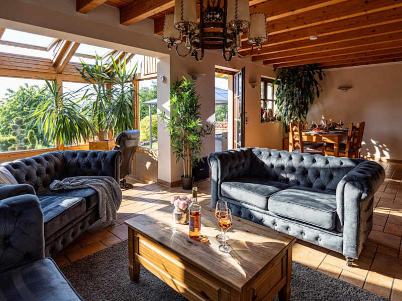 Das Wellnessparadies mit Sauna und Whirlpool Ferienhaus Wiesenblick bietet eine heimelige Atmosphäre mit einem Garten, einem eigenen Pool und Blick auf diesen. Zudem wird kostenlosen Privatparkplätzen und kostenlosem Wifi angeboten. Für die Unterhaltung stehen eine Spielekonsole sowie Tischtennis zur Verfügung.